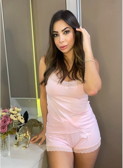 Baby Doll Canelado - Rosa Claro