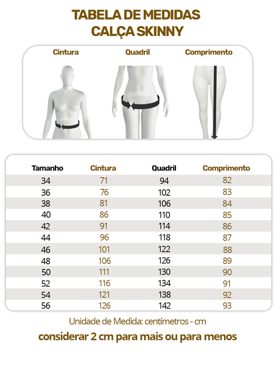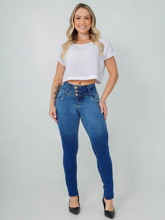 Calça Feminina Jeans Cigarrete Grazi Cós Alto